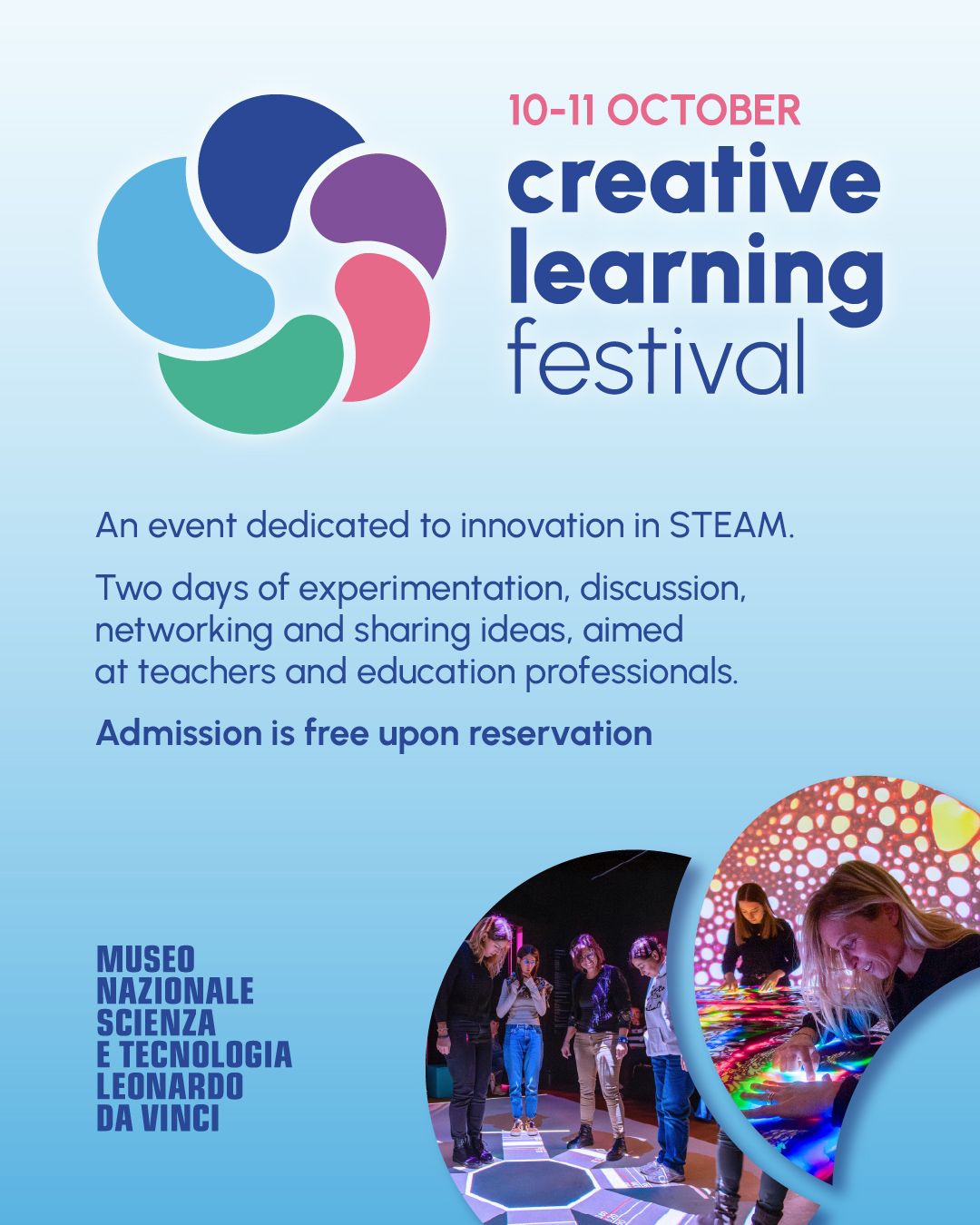El viernes 10 y sábado 11 de octubre de 2025, el Museo Nazionale Scienza e Tecnologia Leonardo da Vinci de Milán organizó la primera edición del Creative Learning Festival, dedicada al aprendizaje creativo. El evento ofreció dos días de experimentación, discusión, networking e intercambio, dirigido a docentes de todos los niveles, docentes en formación y personas que trabajan en educación en distintos ámbitos.